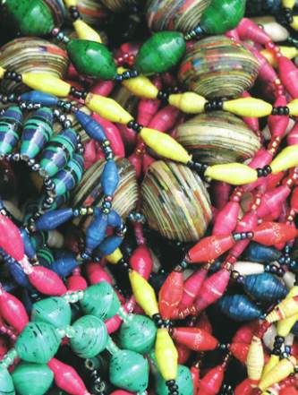 citizens. Ugandan women turn colorful recycled paper into beautiful beads and gather
